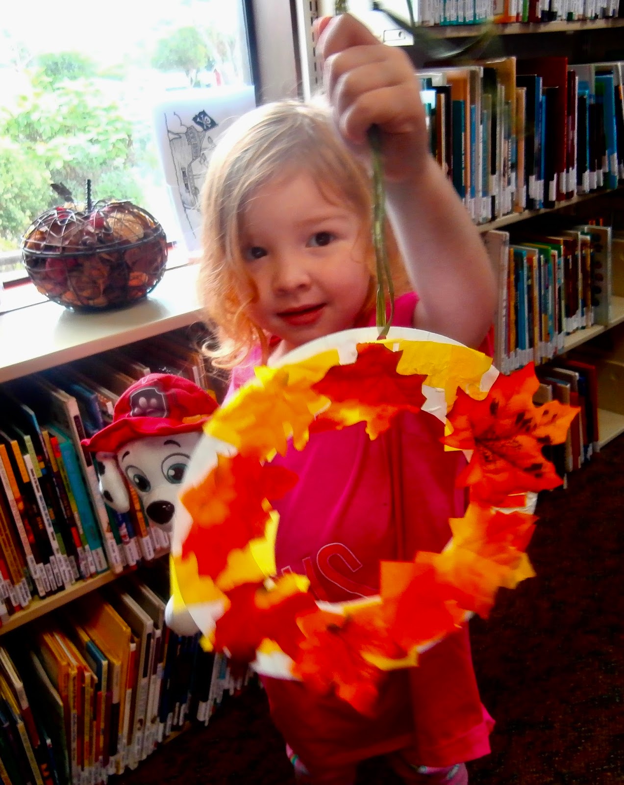 Del Norte Storytime making Fall wreaths to match the book they just heard