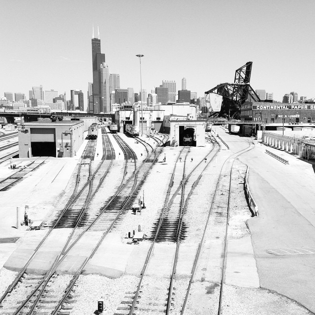 A bleak view of industrial Chicago. Tried the white-washing effect to create the bleakness and give a wintery feeling. The picture was taken in spring (May 23, 2015).