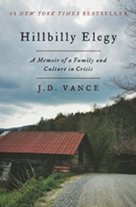 I, along with (more than) half the country am really struggling with the current state of things. Someone recommended Hillbilly Elegy, by J.D. Vance, to me in January, before it got all the buzz it got throughout the year. I thought it was carefully crafted, very relatable, and shed some light on some serious darkness.