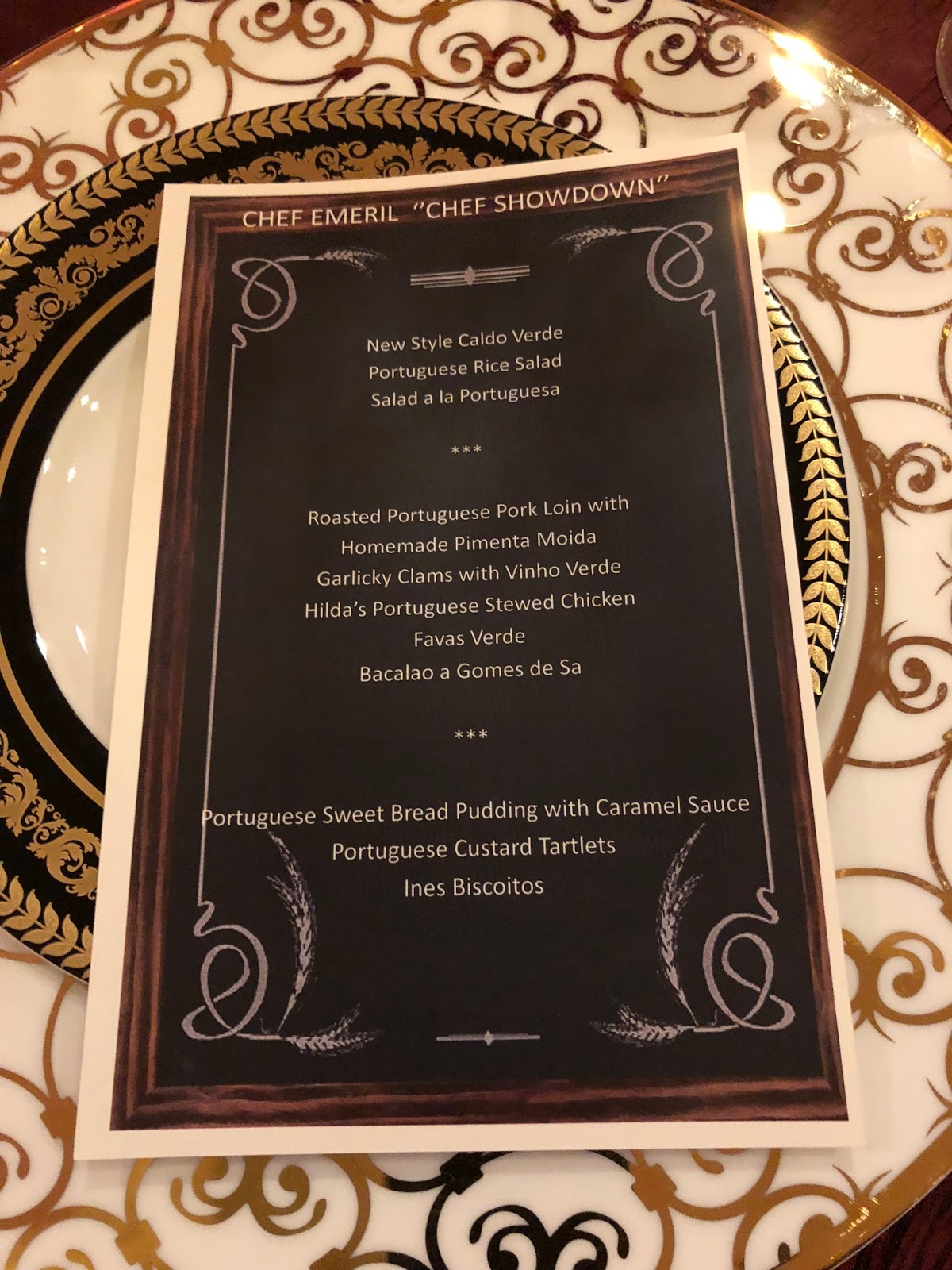 I had to do a little work after that, and then I read for a bit before departing for the Emeril vs. (Robert) Irvine dinner, which rain had caused the hotel to move indoors.  There really was no competition, just one room full of people eating Emeril's food--I was there--and another with people enjoying Irvine's.  Emeril spoke to us a few times and mentioned in his first visit that the sold-out dinner (most events here are sold out) was a tribute to his mother, who died this past August.  It contained many dishes she made for their family when he was young.