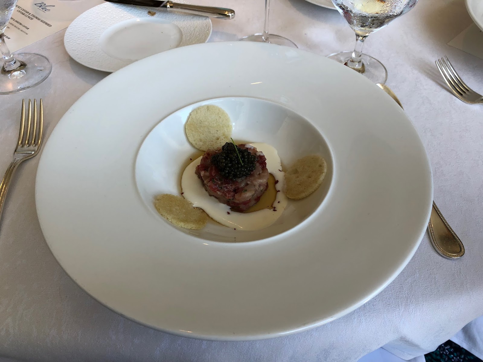Today's events began with a caviar and champagne (I skipped the champagne, of course) lunch that Paramount Caviar hosted at Blue by Eric Ripert. The menu promised many treats