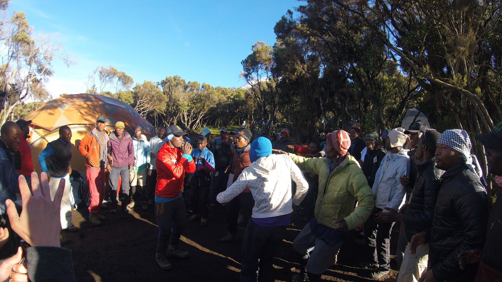 While being a porter is considered a good job in Tanzania, it is certainly a job no westerner would take. I have never seen people work harder in my life. I have also never witnessed people with such amazing dispositions and life outlooks. And that is something that can be found throughout Tanzania. The people there, in large part, are very poor - much poorer than I think most of us would even consider possible. But in the midst of poverty, they seem to be proud of who they are, have a lust for life, and a real desire to learn, to meet new people, and to share what they know. They take pride in appearance. Wherever we went people always looked good - children in spotless clothing, women in colorful dresses and head coverings, men in crisp shirts and pants. It was an odd culture shock from a western perspective - where we often look a bit, ummm... unkempt. On several occasions we joined our porters and guides in singing and dancing. The performances, in which we all participated, were beautiful and done with joyful abandon that quickly spread from Tanzanians to the visitors.
