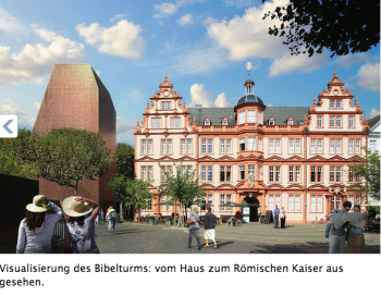 At the center of the controversy is a new “Bible Tower” (Bibelturm) made of a lace of giant letters that would serve as entryway to the refurbished museum, adding new gallery space above and underground. The design won an architectural competition and reminds me a bit of a cross between the new tower at Tate Modern in London and the Pyramid at the Louvre in Paris—which similarly functions as an architectural doorway to the museum complex.