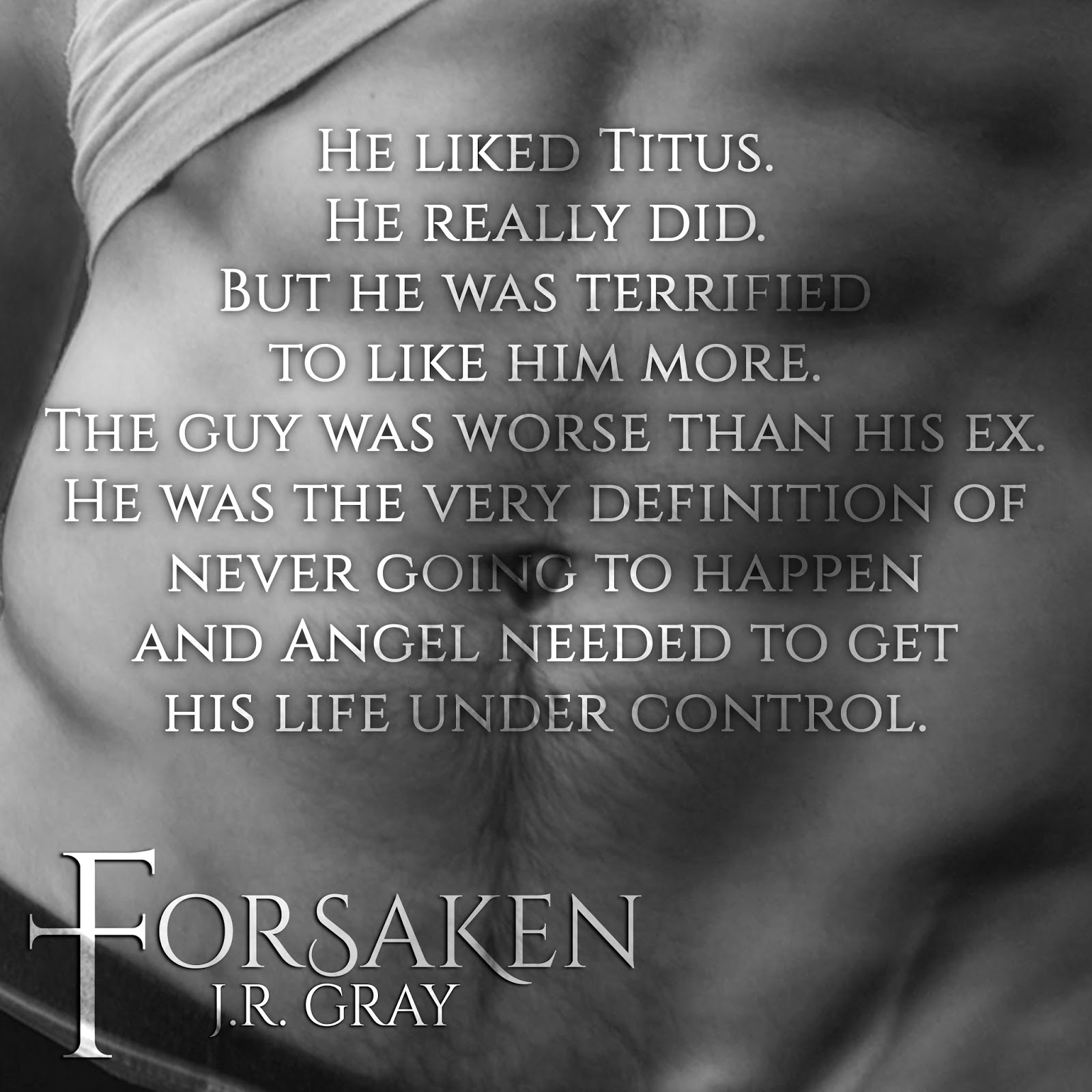So this is exciting!Today is the release day for Forsaken, the newest release from J.R. Gray. I had the great good fortune to read a pre-release copy, and I both thoroughly enjoyed it and think it's a compassionate handling of a potentially difficult topic. Titus grew up in a cult, and Gray never shies away from the difficulty inherent in that. I found the characters to be nuanced and believable, and am convinced that everyone needs an Angel in their life! If you're up for a romance with both depth and heart, check it out!