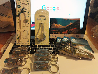 - A Tartan Plaid Black Ink Pen- A Custom designed tote bag- A Silver-Plated Shamrock Bead Charm Bracelet- A Silver-Plated Four-Leaf Clover Bookmark- A fold-in map of our beautiful coastal roads - A postcard representing Glenariff- 2 key rings representing County Antrim and Northern Ireland