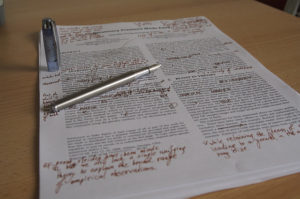 The second round of editing also has various names: “Copy edit” or “line edit” are most common. This is the classic edit wherein your pages come back all marked with red ink. Lorna, as most editors do now, uses Microsoft Word’s “Track Changes” tool.