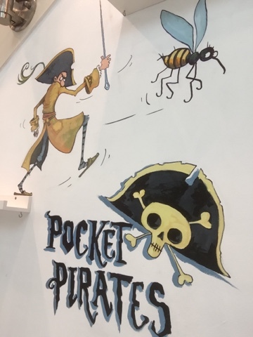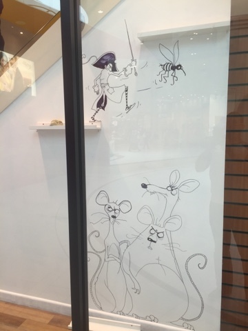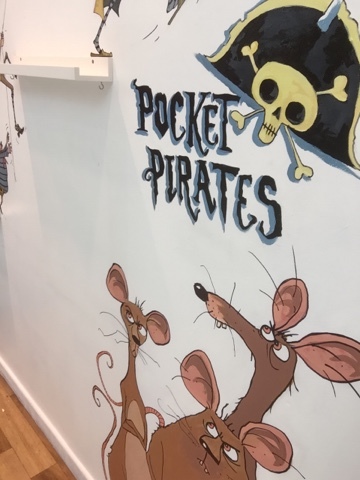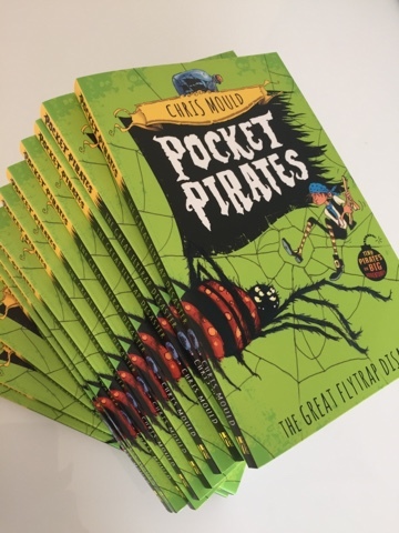 Today, that's July 14th 2016 if you're reading this in the distant future, sees the publication of the third title in the Pockets Pirate series - The Great Flytrap Disaster. Here they are in all their gory green glory. And so, to kick start the celebration of more mini buccaneer antics I have been window dressing at the Waterstones store in Doncaster, courtesy of notable bookseller, Leilah Skelton. Here are a few pics of the progress from the day. Excuse the reflections - there's lots of dazzle and sparkle in the fancy Frenchgate centre because it's in Yorkshire (where glitter was invented).