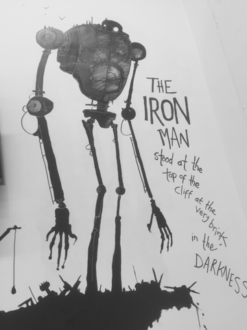 So, for two weeks, I filled the walls with large scale drawings based loosely on archive material from the library and Matt created a show reel of animated clips as we went along.