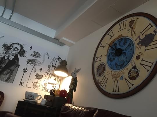 Here is the newly installed clock inThe Loom Lounge at Dean Clough Mills ( Halifax HX3 5AX ) alongside the wall decor that I created for proprietors Stuart and Karon Townsend. By the way the food and drinks are top quality. Well worth a visit if you're hungry.