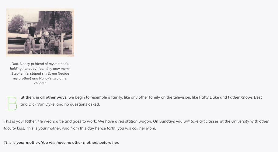 Look, everyone has a story to tell. They do. But you need to know WHY you want to tell your story and you have to tell it well. You have to write beautifully, specifically, meaningfully, with only salientdetails, and with heart.