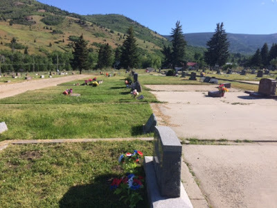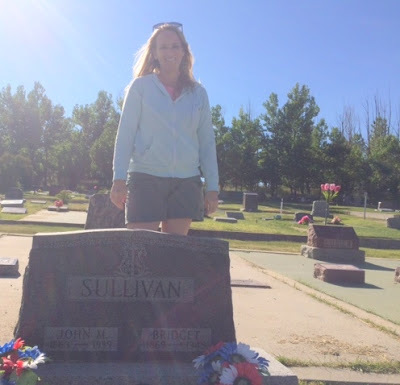 Then, one of my children called excitedly from a few rows away. She had indeed found a Bridget Sullivan, but someone whose birth date was about twenty years off (even given that it's not fixed in stone—ha ha—when Bridget was born, but she claimed to be 26 years old at the time of the 1893 trial). So we kept plugging. It was a hot day. I decided it was time to call it quits, that I'd go to a local establishment where I could pick up wifi, check the website findagrave.com, and then go straight to Bridget. (My cell carrier gave zero service in Montana).
