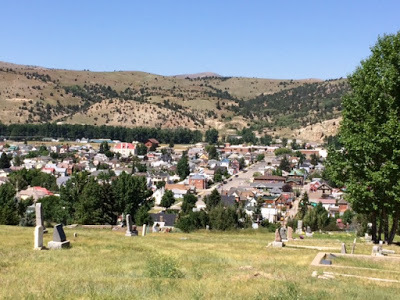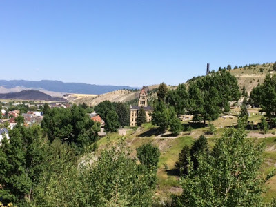 I loved it that Bridget was up on the hillside. Here's her view of the town (you can see that smelting chimney in the distance). I'm glad she found love, that she had a husband beside her in the ground. And I thoroughly believe she must've loved the wild landscape of Montana, its breathtaking mountains...she traded a busy river town for a remote area where you rotate 360 degrees and see nothing but mountains. Montana is gorgeous.