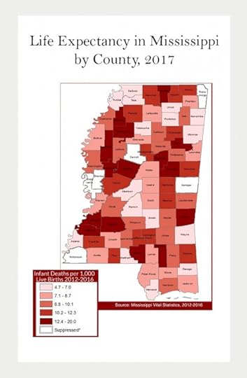 You can see this in evidence in the State of Mississippi, which ranks 50th in the country in terms of infant mortality, with 9.08 infant deaths per 1000 live births. (This is called the “IMR” or “Infant Mortality Rate.) Drill down on this “averaged” statewide indicator and, as you might expect, you’ll find wild disparities at the county level, with some counties doing dramatically worse (or better) than their peers: