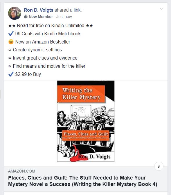 Facebook offers a great number of groups to promote your books. If you have not already done so, you need to try this promo method. Here is the basic formula.