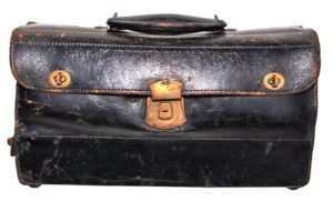 But though Doc didn’t have any trouble in Dodge, the climate was disagreeable for him, with temperatures hovering near 100 degrees that summer and clouds of dust kicked up by thousands of head of Texas cattle. So by the fall of ’78, he was headed to the cooler air of Colorado, taking his mistress Kate Elder along with him. But he may have intended to return to Dodge the next summer to resume his dental practice during the cattle season, as it seems he left something important behind: a small leather satchel containing some dental instruments and personal items, and a photograph enscribed “Dr. Holliday.”