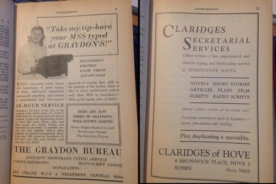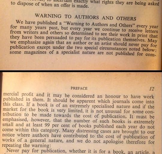 I was in Henley On Thames last night in a pub where they have lots of old books on display as decoration. Naturally I had to have a quick butcher's and, to my delight, discovered a 1954 copy of the Writers' and Artists' Yearbook. A quick chat to the manager and a donation to a local charity and it was mine. It's a fascinating read.