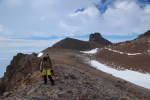 Straight after survival training we repacked, turned around and headed out on the quads again for a jolly – another night in a field hut, this time purely for fun. Wrapped up the next day with a long walk up a scree slope in high winds, during which I mentally composed farewell messages to my loved ones in case I expired. (For some reason it doesn’t look nearly as scary and steep and windy in the photo!) Then set out on the journey back to station and experienced what happens with thick cloud cover – it becomes physically impossible to discern depth on the snow, and therefore very difficult to ride. Something I’d heard described but never experienced.