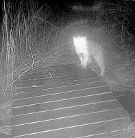 This week the bridge has been in heavy use for the commuter crowd. We have a picture of a coyote, leaving peemail for the dogs. (They’d left some for him, so it was only courteous to responde promptly). Along with that was our first picture of a porcupine, and a Bobcat who posed nicely for us.