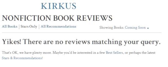 The opening clause made me happy:An incisive study of one of the past year's most significant mass shootings . . . But it was the closing line that made my heart skip a beat:In both Columbineand this up-to-the minute portrait of the Parkland tragedy, Cullen has produced masterpieces that are simultaneously heartbreaking and hopeful about a saner future.That's enough encouragement to right a third book about this ghastly topic. Nearly. I believe two is my limit--for me, and for our kids. Please let this be the way out.I'm eager to get back to my gay soldiers book. (And a secret project I can't talk about yet.)Here's how the search looked for upcoming starred nonfiction just before they posted my review Sunday, BTW: