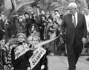With the exception of the invisible Jon Huntsmann, the existence of a moderate Republican Establishment at odds with the Tea Party has become a myth. That GOP Establishment has been pretty much replaced by the Democratic Party and whatever was left over was captured lock, stock and barrel (no pun intended) by the Tea Party. Look no further than the supposed leading "moderate" alternative to the right-wing fringe, one Willard Mitt Romney. It's one thing to be a serial shape-changer, an art he has mastered. But Mitt crossed into new territory today when he decided to become a bona fide sewer dweller.