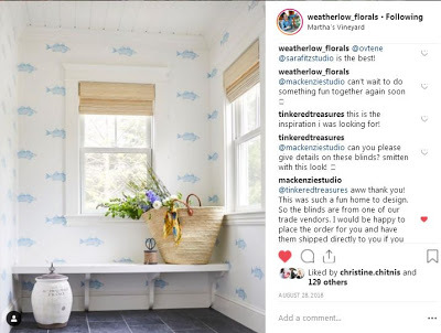 I saw the above post and GASP... began following each account involved in the making of this bright and simple mudroom. As commented, I was smitten with the white walls, woven blinds, and overall simplicity.