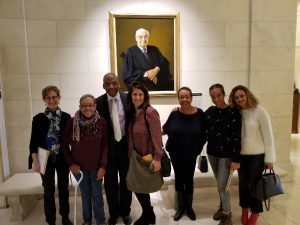 Jo Ann traveled east from Los Angeles, where she lives, and she came with family. We planned months in advance to visit the National Museum of African American History and Culture, jumping on the Internet early one morning way back when to grab tickets for our crew. But then: the shutdown. So disappointing for these out-of-towners, who haven’t yet been to this amazing museum. But a friend at the Supreme Court Historical Society came to the rescue and took us on a fabulous tour of the Court–including the basketball court on the top floor, also known as “the highest court in the land.” Also thrilling for all was meeting Gary Kemp, deputy clerk of the Supreme Court. Like Jo Ann, he’s from the South, and they had some stories to trade.