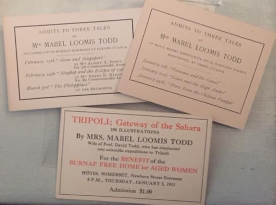When I went through a folder of her lecture notes at Yale I was amazed to see outlines for talks about not only Emily Dickinson’s life and poetry, but also about: various topics on astronomy, “Bermuda, The Summer Islands,” “Carthage, Then and Now,” “Club Life for Women,” “The Cruise of the Coronet,” “Ellis Island, “Famous Women,” “Granada and the Alhambra,” “The House Beautiful,” “Japanese Art,” “The Lost Art of Letter Writing,” “Quakers in America,” “Witchcraft in New England” and many, many others.