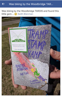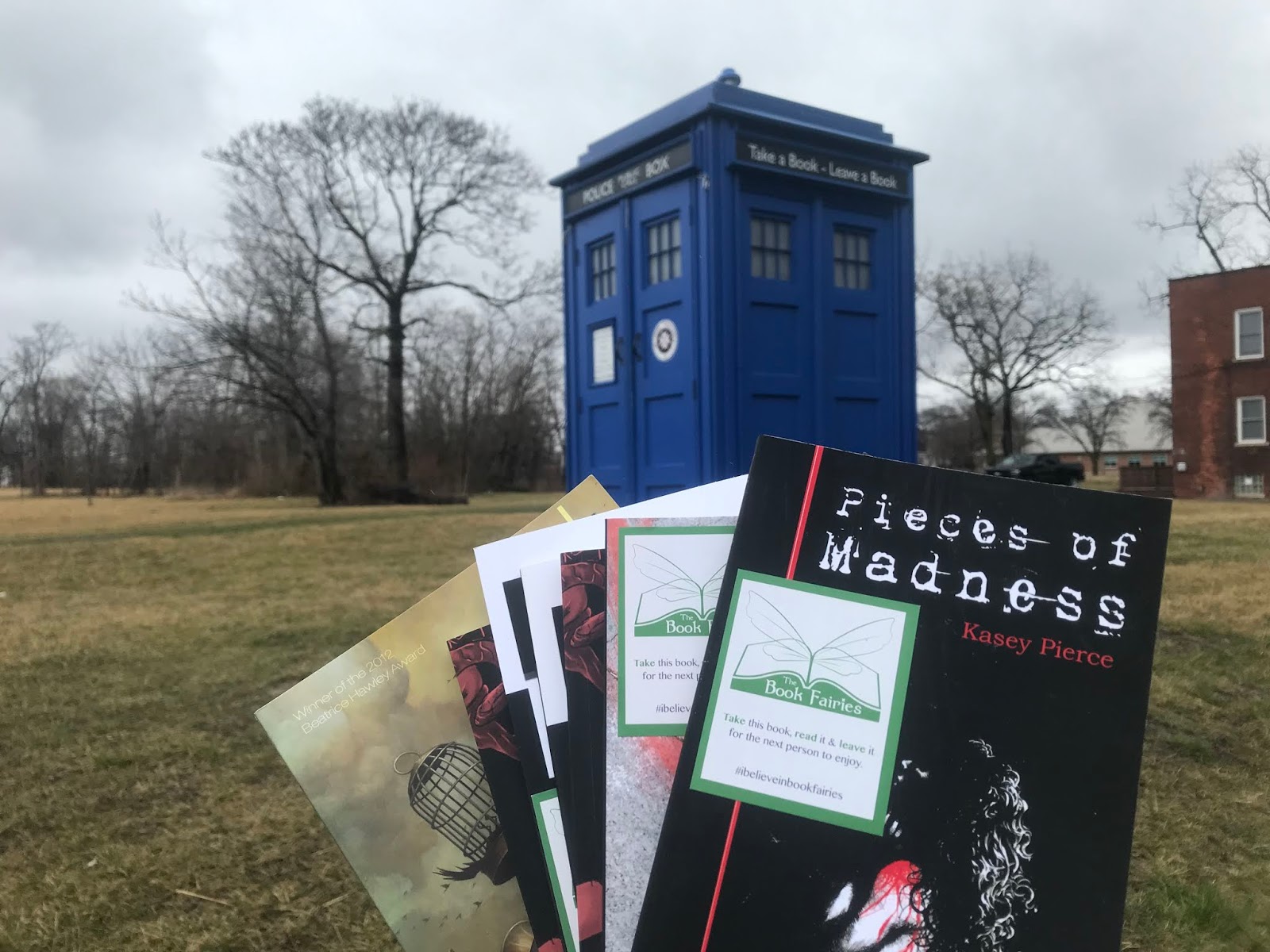 The next day, a friend from high school found one of my books in the Tardis Detroit. This isn't too entirely shocking. I'd dropped off several books from Detroit authors (Kasey Pierce and Jamaal May) along with a few of my own in the Tardis about a week prior. In fact, I've been leaving books all around Metro Detroit for about three years now. Mostly in Little Free Libraries. Recently I've discovered The Book Fairies, and have been including their stickers with my books, just as a way to encourage people to share books instead of leaving them on a shelf. For the most part I'd only been putting my books around town. Lately I'm trying to include other Detroit based authors, preferably indies. Especially in locations such as the Tardis.