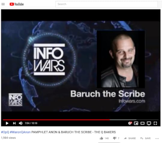 Rob Dew of InfoWars interviewed Paul Furber (aka BaruchtheScribe) and James Coleman Rogers (aka PamphletAnon), on December 27, 2017. YouTube censored this interview when they de-platformed Alex Jones. I consequently link to a complete and unaltered pirate copy. This interview introduced Q to the InfoWars audience, and catapulted QAnon beyond 8chan to Reddit and YouTube, where Q was embraced by deplorable supporters of the 45th President, Donald J. Trump. Millions of Trump supporters follow the gnomic utterances of a mysterious, pseudonymous source, a modern-era Delphic Oracle known as QAnon. Many of us subscribe to Q whisperers who interpret the Q drops for us. Some of us send them money.