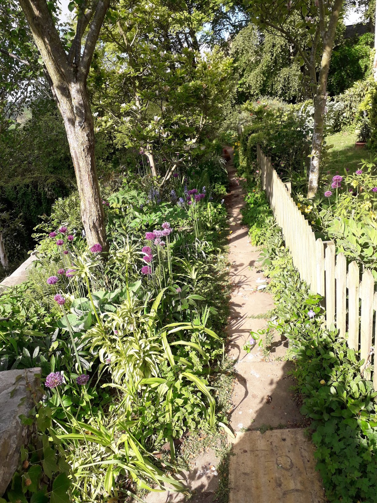 Front borderA new mindfulness has crept into the way I garden. One thing I am very aware about is that I have been far too quick to tidy. I also have no idea in many ways what is actually there or indeed the potential of the garden.Every time I go out, I am intensely aware of my limitations and how I have simply accepted things without really thinking about it. Or at least really pondering it and about what clues there are to its natural potential. So I am starting to get together a list:1. Do a survey of the trees I can see in the dene and try to see if they yield any clues as to how it was used pre the 19thcentury. I know we have both mature small leaf and large leaf lime, for example. Most of the mature trees are multi-stemmed above a certain height – this makes me think coppice wood, rather than wildwood existing on the edge of a farm. We also have nettles, except for the area between the mature trees. The nettles are not that significant in the footpath area either.2. Do research into the geologically significant deposit of limestone which was supposed to be in the garden but which the county geologist could not immediately spot 20 years ago. He said this was a good thing but I now I am wondering – should I know more about it. I am pretty sure I know where the deposit is (ie in the stream bed – above the middle pool) but I don’t know. So I suspect I need to research the records.3. On this side of the dene, the hawthorn and the holly may point to a former hedge which served as a boundary between a field and the dene. The road bends in a specific sort of way and Peelwell (now Haydon View care home) is a very old farm. Our plot was not part of Peel Well but rather Broom Farm which was centered on where the high school currently stands. Hedgley, the house next door, has the remanents of an orchard on their grounds but it is hard to say when that orchard came about. The original part of that house was built a few years before ours. We actually share drains. But I need to do more research.