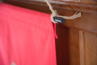 INSTRUCTIONS:Paint the wooden dowels black and set aside to dry.Fold your fabric in half (it usually comes this way) and iron it flat so that is is about 24″ wide and 36″ long.Cut into the pendant shape (see picture). I used a ruler to measure halfway across the shorter length and then about 12″ up from the bottom and put a dot there. Then I used a ruler and a pencil (you could use a fabric marker) and drew from each bottom corner to the center.Turn with right sides together. Sew around the edges with a 1/4″ seam, leaving about a 6″ opening. Snip the tips of the pendant (see this tutorial on making corners). Turn right side out. You might need to use a pointed object (I use closed scissors) to push out the tips. Iron around the edges and the opening so that it matches the seam. Sew it shut right on the edge of the opening. Fold the top edge over about 2″ (see photo above). Sew it down to make a pocket to slide the dowel through.Print off your Hogwarts House images. I scoured the internet and I found these made by (I can’t find the artist’s name, but if you know who it is, PLEASE let me know to give them credit). Follow the instructions on the iron-on package.Slide in the black painted dowel, tie your rope/twine/ribbon and hang!