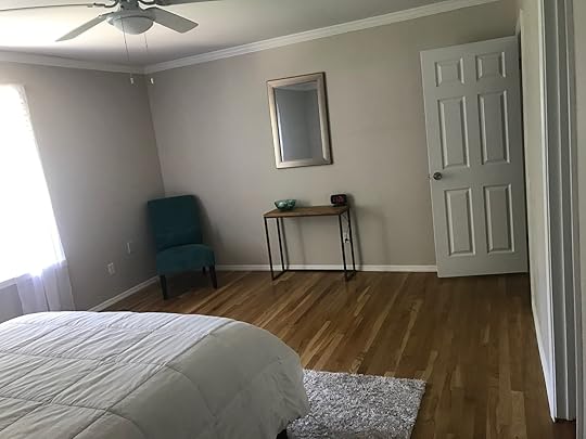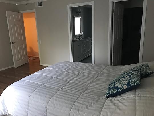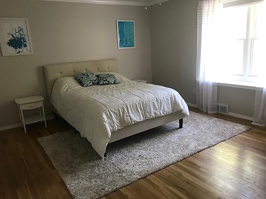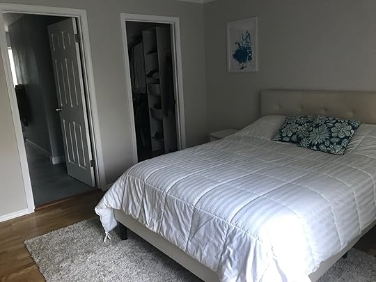 The new master bedroom is still a nice size at 13' x 16'. We put a fresh coat of paint on the walls (we had to paint the new wall anyway) that was a touch darker and a touch more gray than the old shade, to help tie into the gray of the bathroom.