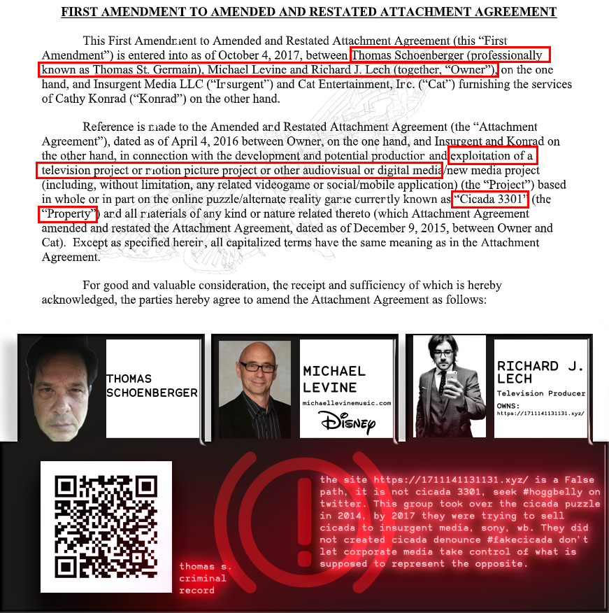 In this interview, gHOST3301 and I review the complicity of Thomas Schoenberger, formerly one of two “head composers” in Cicada, whose greed and mismanagement of Chavez triggered the collapse of the order. We discuss the prospects for a reemergence of Cicada 3301 on January 5, 2020. We address Schoenberger’s colleagues, composer Michael Levine and television producer Richard Lech.I first asked Thomas Schoenberger for an interview on April 16, 2019. He ignored me, then he blocked me on Twitter, and he directed his co-conspirators to do likewise. I was subsequently blocked by DJ Genki and qntmpkts, despite an absence of prior interaction between us, and by several Schoenberger sock accounts.I later reiterated my invitation to Schoenberger in the interest of fairness and completeness. He continued ignoring me until I published my interview with Tafoyovsky: then he complained that I did not ask him for a review before publication. I no longer need Schoenberger’s input. His critics and a large tranche of internal Cicada documents in my possession evocatively speak for him.