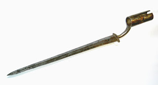 I picked up a wickedly pointed metal object from the dining room table, holding it by its hollow handle, and asked, "Mom, can we sell this garden trowel?" She looked up from the box of file folders, staplers and paper clips she was sorting and said, "That's not a trowel, it's a bayonet. Give it to your father."