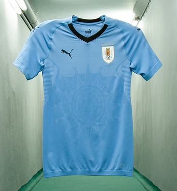 PUMA公司携手乌拉圭足协(AUF)共同推出了乌拉圭国家队全新的主场球衣,“天蓝军团”将身披此款球衣出战明年夏天在俄罗斯举办的世界杯赛,独特的设计描绘了著名的“五月太阳(Solde Mayo)”,旨在激励球员们在世界足坛最大的舞台上尽情闪耀。