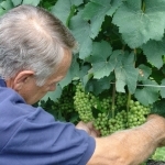 The first touch will thrill the “life begins at conception” people reading this blog, because the first touch on a grape begins the year before your grape crop arrives. In May and June, we need to leaf-pull the leaves around the clusters of this year’s grapes (See #7), but this also exposes sunlight onto the forming buds of next year’s crop on the canes. Your crop load in these buds is thus established a year ahead of time. Why a grapevine bud exposed to sunlight produces a more fruitful bud makes more sense if you realize the plant needs birds and animals to see the grapes, so they eat the fruit and pass the seeds on, away from underneath the parent vine. Grapes are not good acorns.