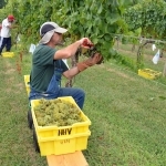 Finally, in fall, we arrive at the most critical twelfth touch, picking. Picking has so many variables that it would take an entire blog to cover all by itself. Suffice here to say someone or something has to separate the grapes from the vines to proceed. Machinery to do this can cost a quarter of a million dollars, so that is out for the small producer like us. Paying to have a service come to us and use such mechanical harvsters is also cost-prohibitive. Harvest picking thus tends to rely on family and volunteers to get the job done.