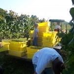 While lugging this year’s freshly-picked grapes into the cooler, a family member complained about having to heft the grapes an additional time for weighing. Given the number to times we already have to touch those grapes, it struck me as amusing, from both a farm work and wine-grower perspective.