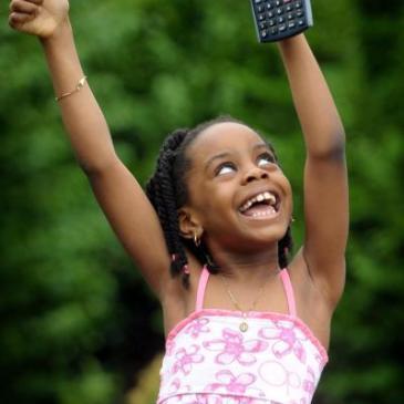 Take a look at the equation that Ms. Okade is working on. That’s a quadratic equation. She started working on them when she was four. At fourteen, she is working on her doctorate in financial mathematics. She’s written a children’s book called Yummy Yummy Algebra — the first in a series of four books that she plans to publish.