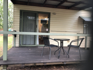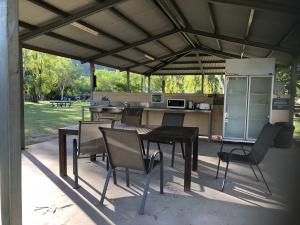 The next morning I walked over to the swimming pool while Alan had his shower. In a chair in the open camp kitchen I waited for for the pool to open at 8:am It was so peaceful listening to the birds and watching Rosellas squawk and flit amongst the gum trees. I’m amazed at how different they are in colouring to those at home. Familiar Plovers stately patrolled the grass and tiny birds searched for a breakfast of bugs and worms. Overall was the distinctive call of a black crow. The breeze made the trees, and our washing, dance. The pool didn’t open at the prescribed 8am (the chalet owners obviously hadn’t made the transference from the wet season to the dry season) so I’ll walk back to our chalet in warm tropical sunshine enjoying every moment, especially after a cold Melbourne winter.