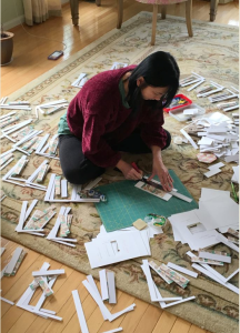 This photo was shared during my slide presentation,and pleasantly sparked a burst of laughter in the room.While I do have a large table to work at,I find it comforting to lay everything out on the floor.Believe it or not, this work space is very organized.