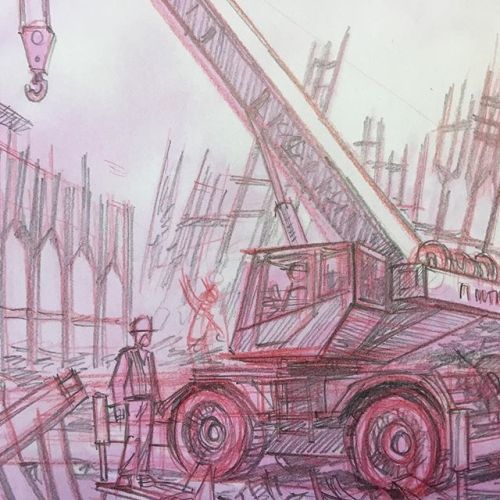 By the time I do my pencils, I’ve already figured out most of the drawing; a combination of an initial pencil thumbnail and digital color sketch which I’ll also use as a guide when I paint. I take that final digital comp and print it out lightly in pink on toothy paper, then use red pencil as a first pass and then a 2B lead for the final drawing. Later, when I scan, I can remove the pink lines. I print the digitally colorized pencils on arches hot press 300 lb watercolor paper on my Epson P800, the inks of which won’t bleed when I apply the paint. A long process, but it works for me!