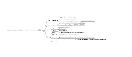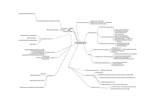 I don't do a lot of on-paper planning of what is going to happen in my stories, but I do keep a digital mind-map of the writing process. This is divided into sections, one for each group of three chapters. I make a note of the main scenes of each chapter: sometimes after I've written, but other times beforehand, when I know what needs to happen but haven't got round to writing it yet. It starts off as a fairly simple mind map, but ends up looking like a dog's dinner:
