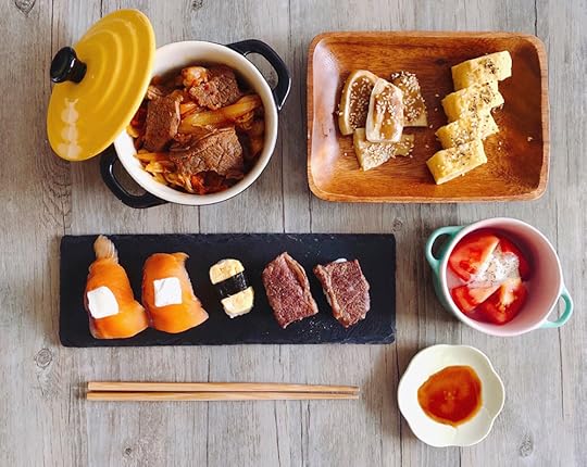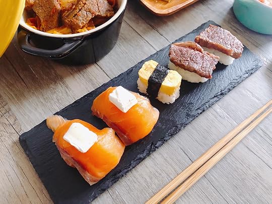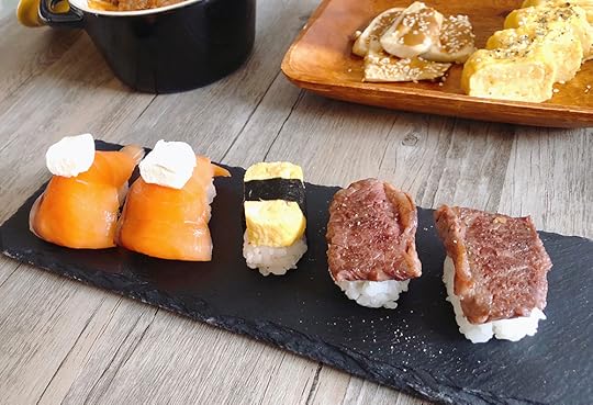 那天家裡剛好有剩白飯,自己是日式料理的愛好者,於是突發奇想嘗試做看握壽司,就跑去買了一罐壽司醋,手邊雖沒有生魚片但有燻鮭魚,翻翻冰箱有的食材,隨性做了熟食版的握壽司套餐。