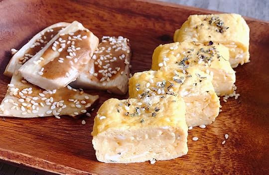 很喜歡蛋料理,一直想做做看玉子燒,無奈玉子燒需要使用專用玉子燒鍋,那天在網路上看到用一般平底鍋也能做玉子燒的方式,是將蛋液先在平底鍋煎成半熟長條形以後,放入烤盤用鋁箔紙包起來整形成整成長方形,可以用餘溫讓蛋液變熟,或者是也可以再烤一下,等到冷卻打開,就完成方形的玉子燒囉!