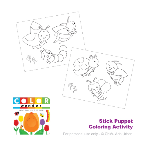 Make it a craft day too! Pair storytime with these stick puppets and coloringactivities featuring the playful bug characters and spring flowers.