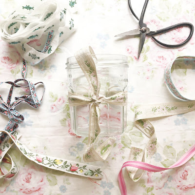 Embellishing a jar can be as simple as tying a scrap of ribbon around its base.
