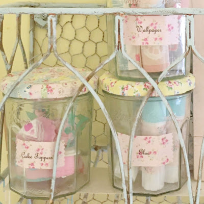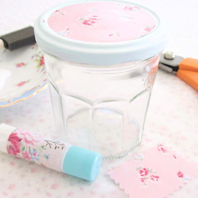 Embellishing a jar can be as involved as painting the lid and topping it with a circle of paper with a new label to match.* Seal top with decoupage medium.