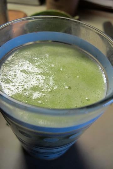 But Rick's soup didn't do-in the full head of cabbage, and so I decided to try a recipe recommendation from my old housemate, Christopher–cabbage juice. Specifically, cabbage (4 c.), avocado, parsley (handful), and a granny smith apple juice.