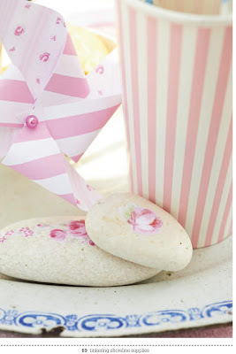 I decorated stones and sea shells to be used for styling purposes {as shown above: Pretty Pinwheels, page 75} but on their own, they make lovely natural accents to use as vase fillers or paper weights. The project also lends itself to be used to make kindness rocks – to decorate, add an uplifting message, and leave behind for someone to find.